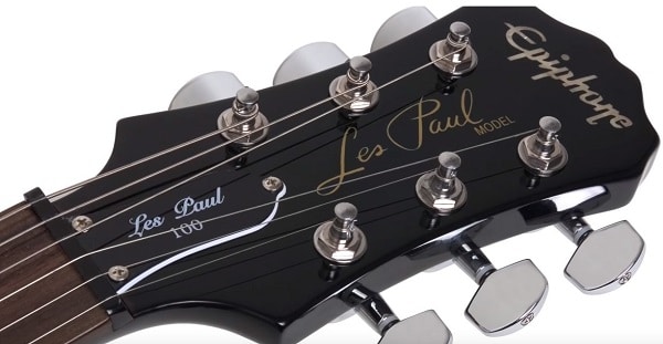 If it wasn’t for the Epiphone logo on the Les Paul 100 and the different shaped headstock you would I think this was a real Les Paul. This is an excellent looking guitar with that famous “Paul” shape, twin humbucking pickups, and the angled pickguard that we have all come to love with the Gibson Les Paul. This Epiphone version gives you everything that you need to start rocking out without having to break your bank account.